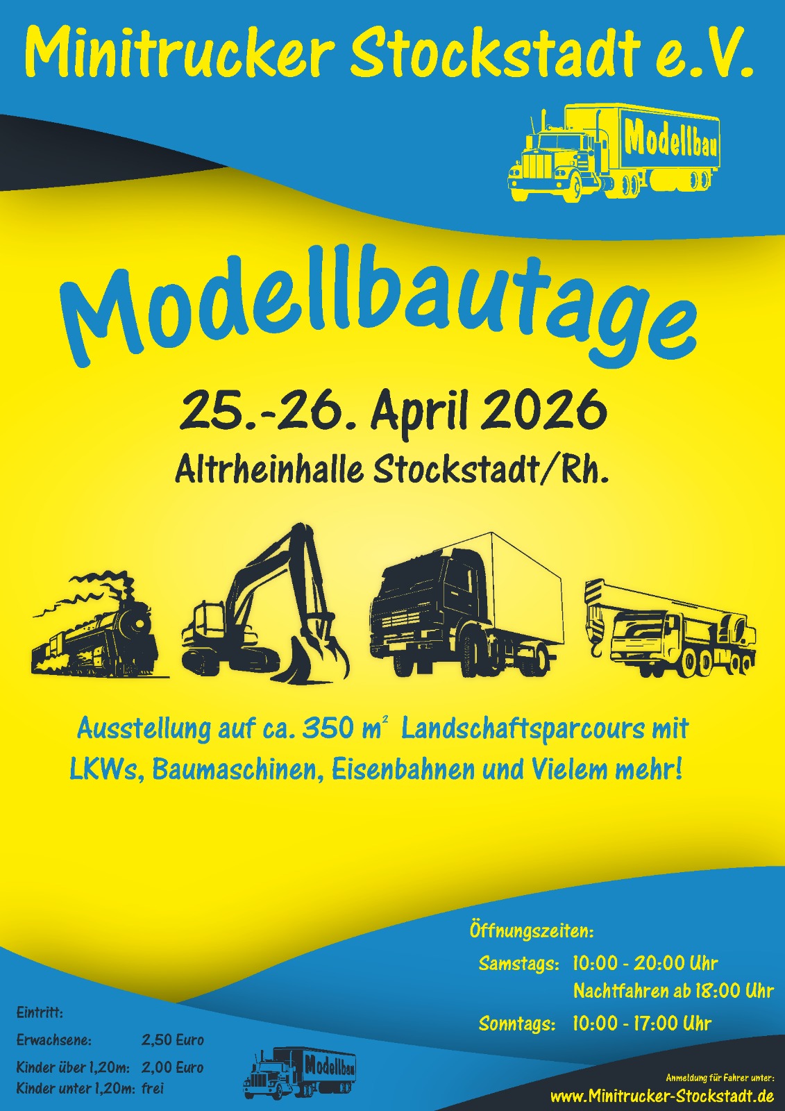 Hier finden Sie alle wichtigen Informationen zu unseren Veranstaltungen. Die Minitrucker Stockstadt/Rh. veranstalten jedes Jahr im Frühjahr und im Herbst ihre Modellbautage.